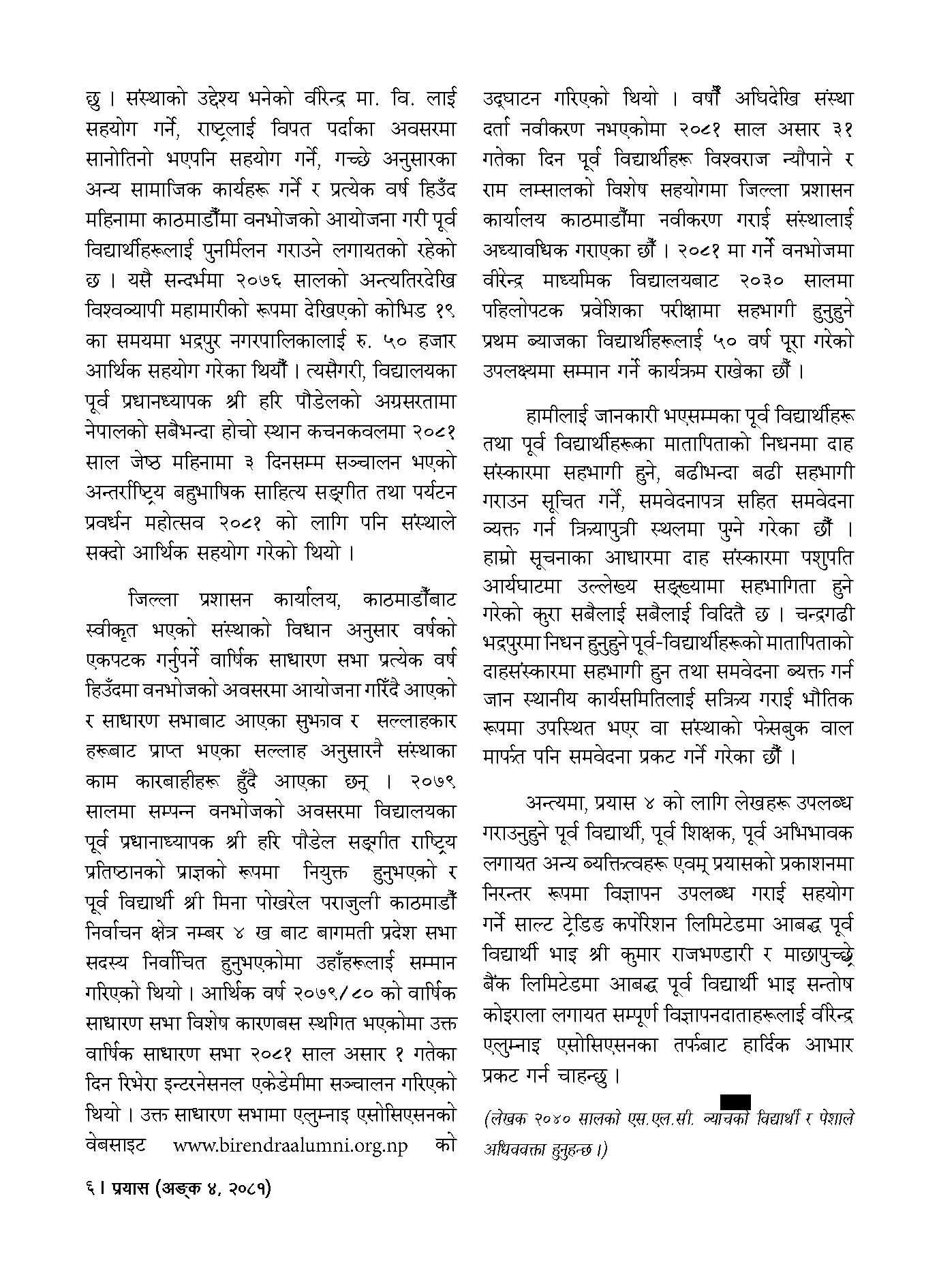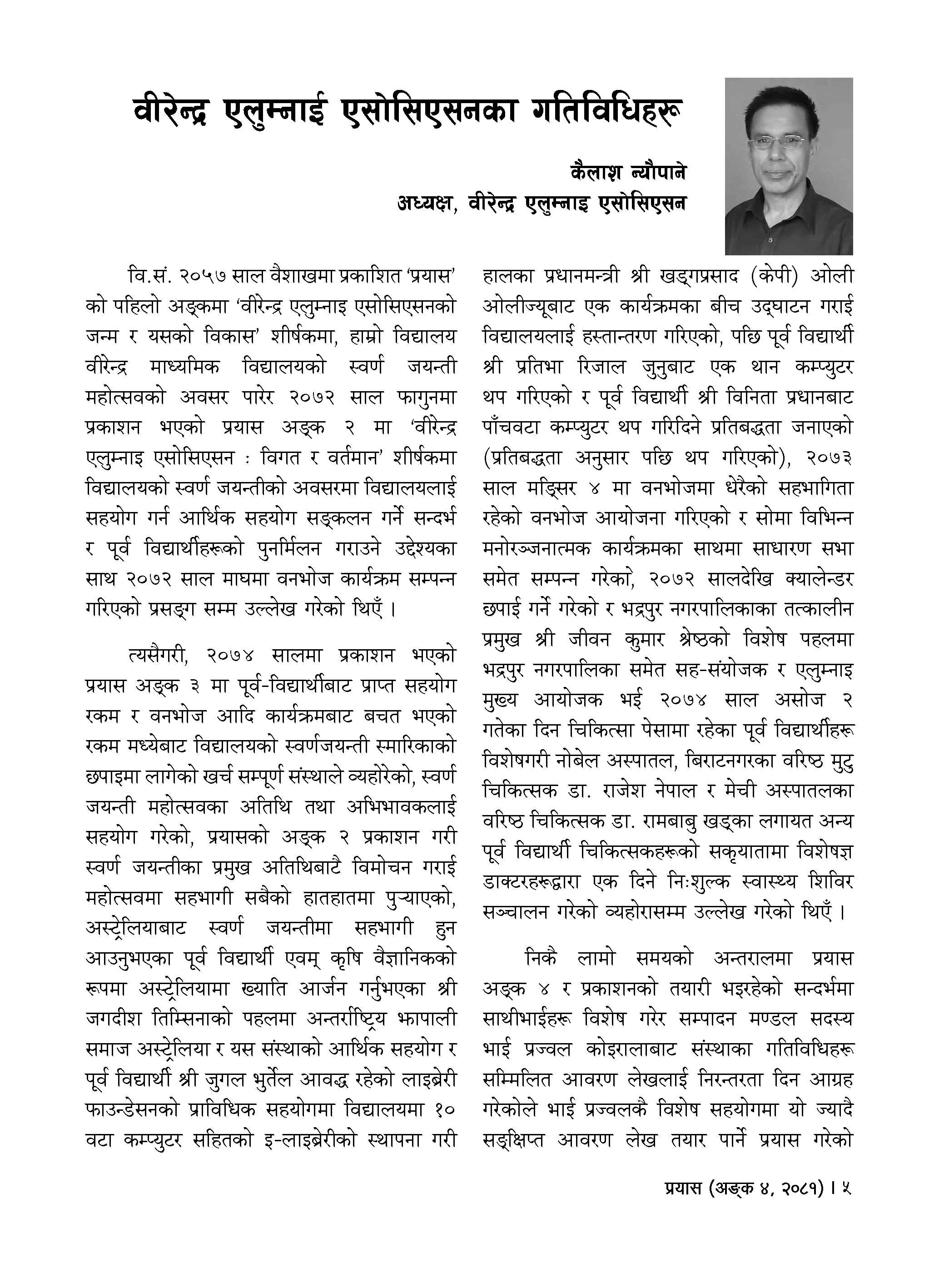 वीरेन्द्र एलुम्नाइ एसोसिएसनका गतिबिधिहरू